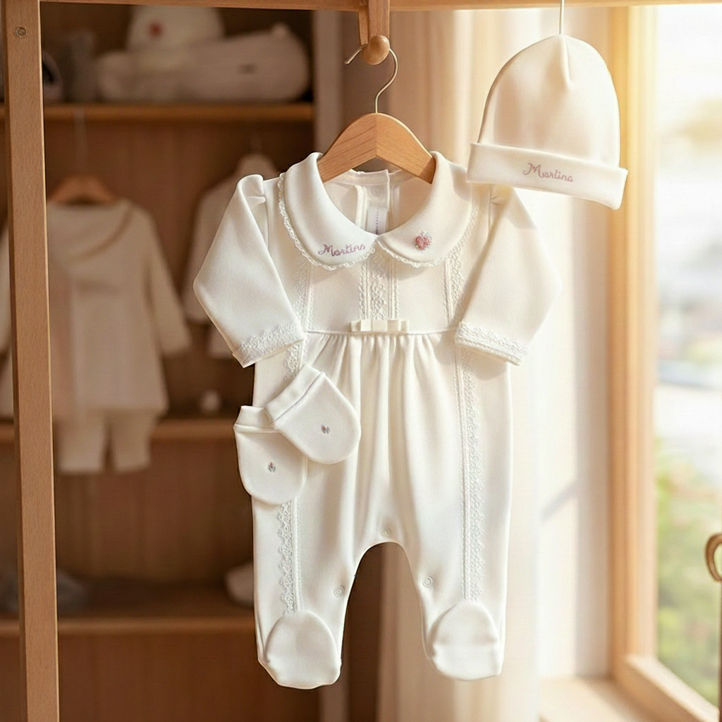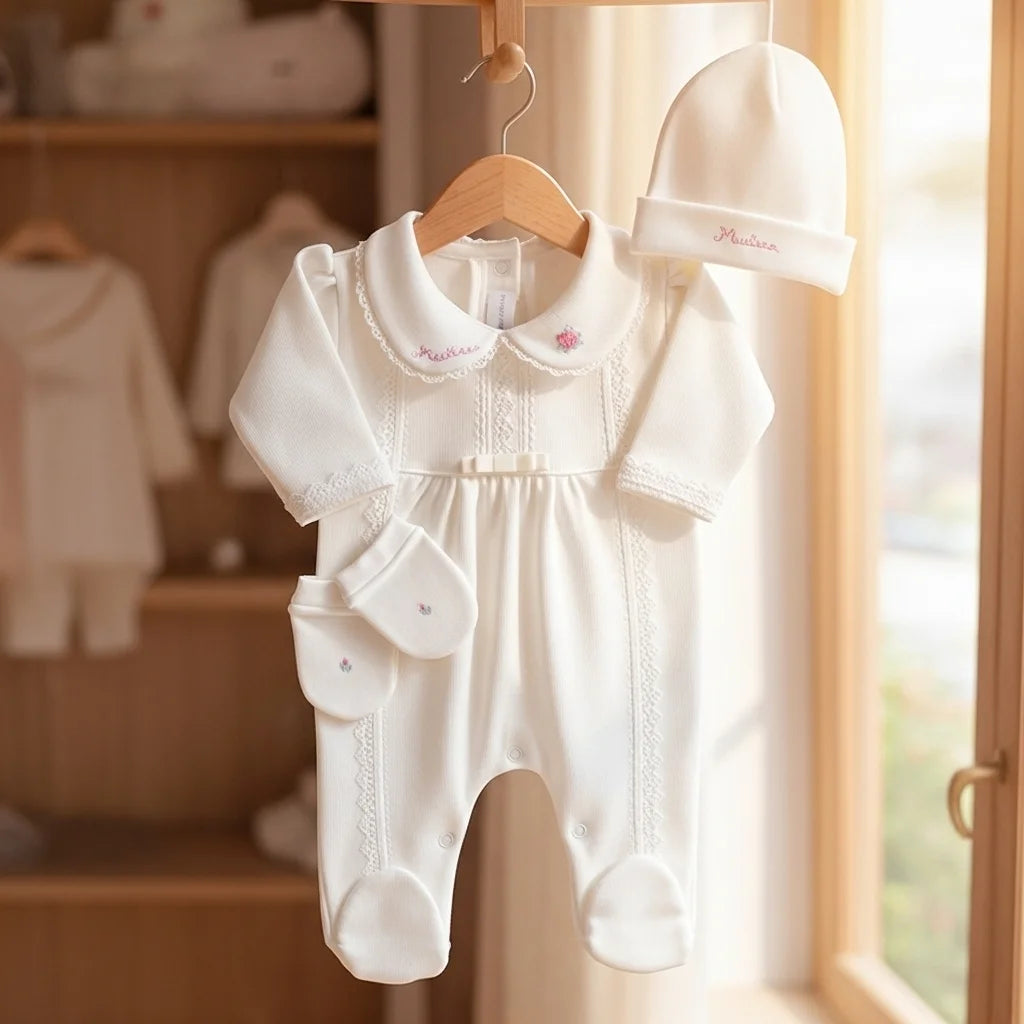 Kit Maternidade Cecília Personalizado off-white - 3 peças