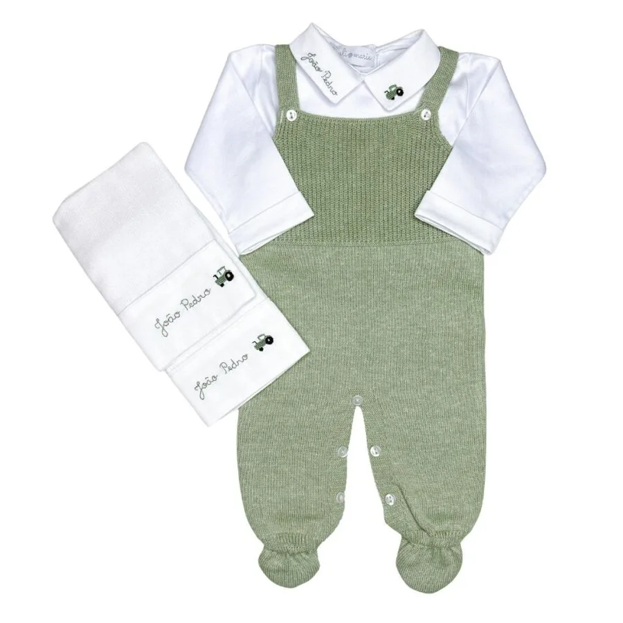 Jardineira Bambu cinza com Body Brasão – 2 peças