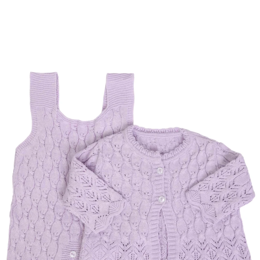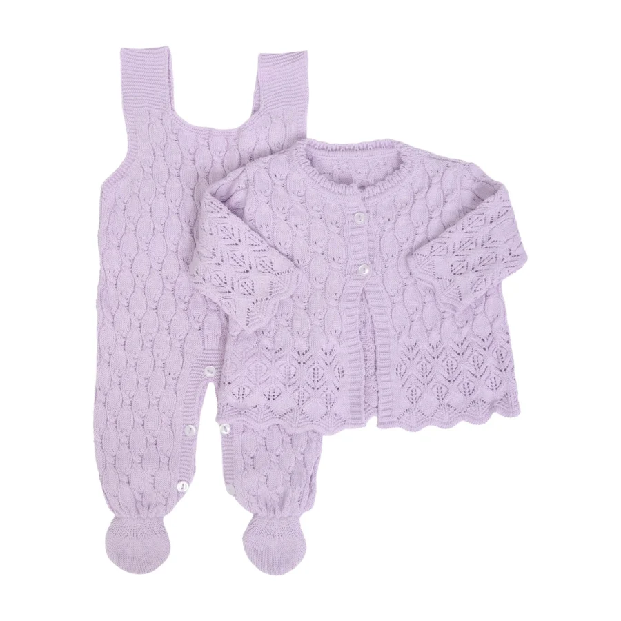 Jardineira e casaquinho Julieta Rosa bebê- 2 peças