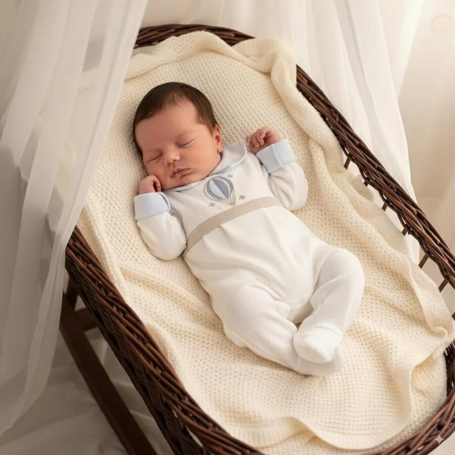 Saída Maternidade Balão Azul Bebê com Body e Manta – 3 peças