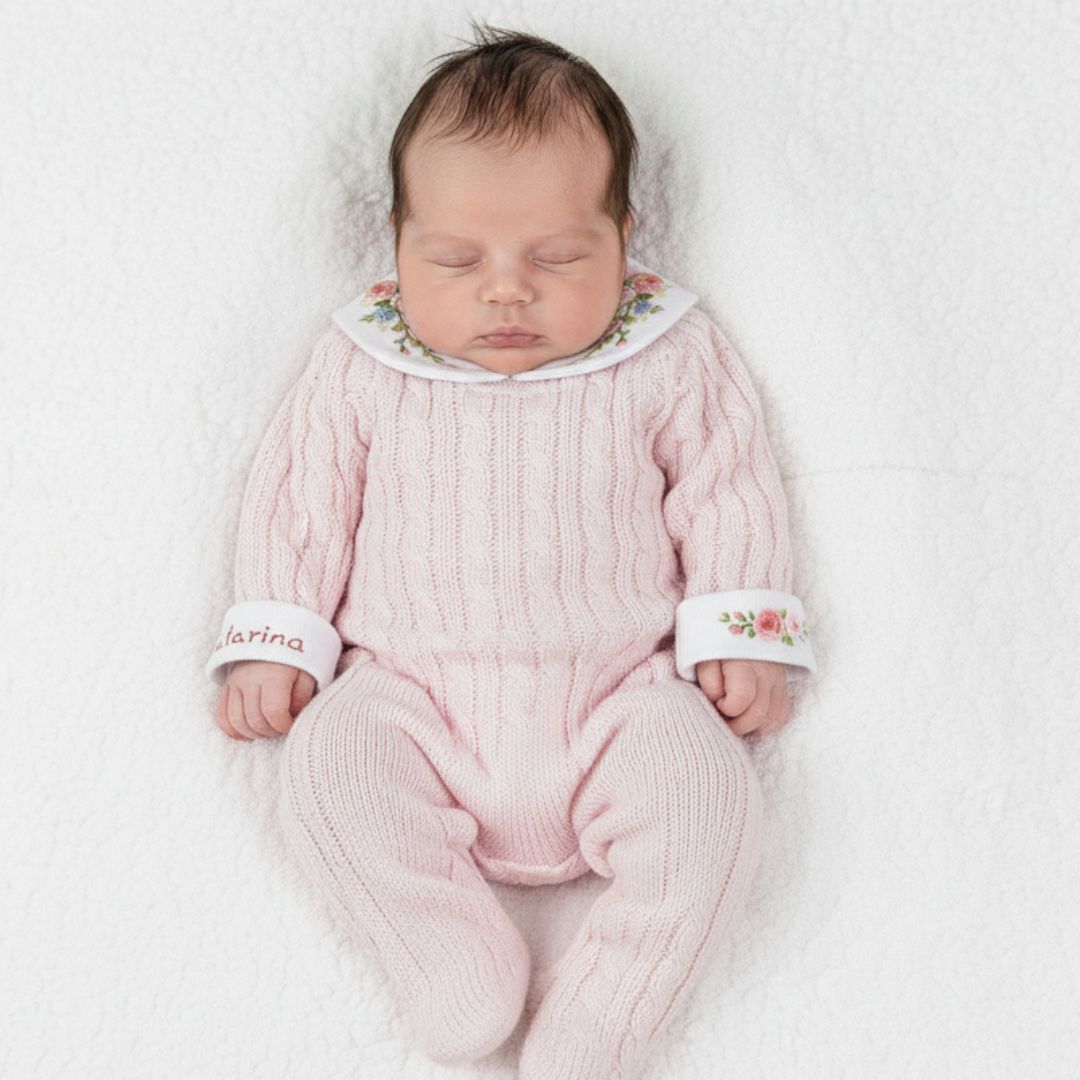 O grande diferencial deste body está na personalização: a inicial da bebê é bordada à mão no punho com todo carinho, o que torna cada peça única e exclusiva. Por ser um trabalho manual, o bordado pode apresentar leves variações de cor e tamanho.