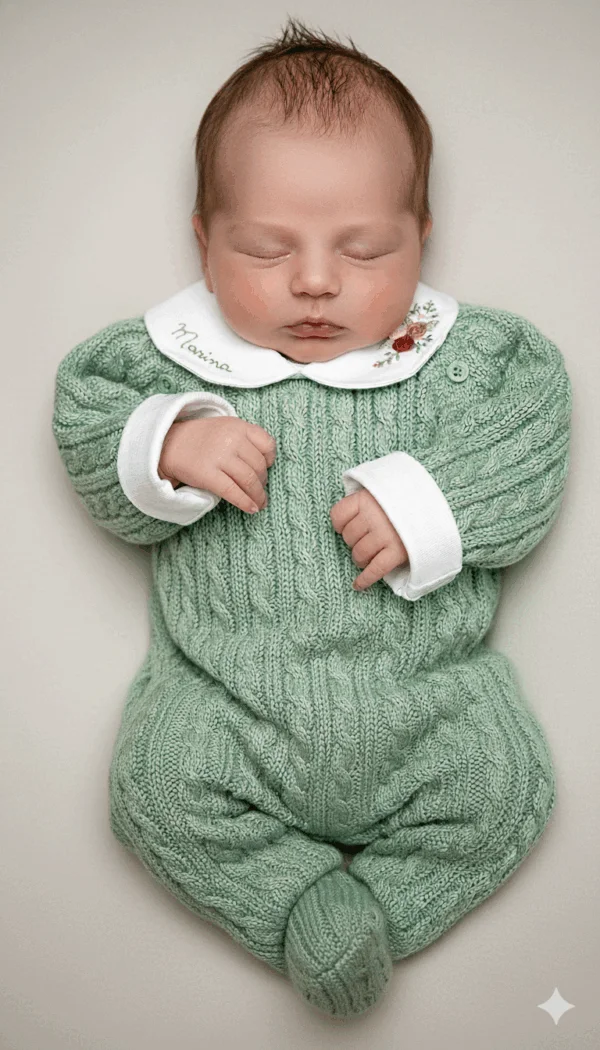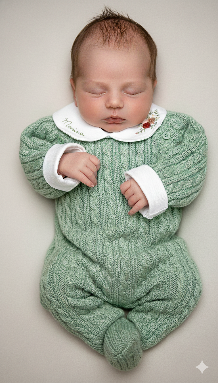 Body Marina Bordado à Mão em Suedine 100% Algodão – Ideal para a Saída de Maternidade