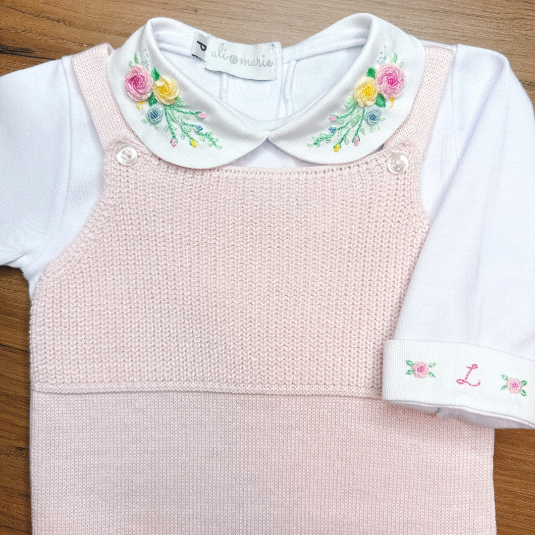 O grande diferencial deste body está na personalização: a inicial da bebê é bordada à mão no punho com todo carinho, o que torna cada peça única e exclusiva. Por ser um trabalho manual, o bordado pode apresentar leves variações de cor e tamanho.