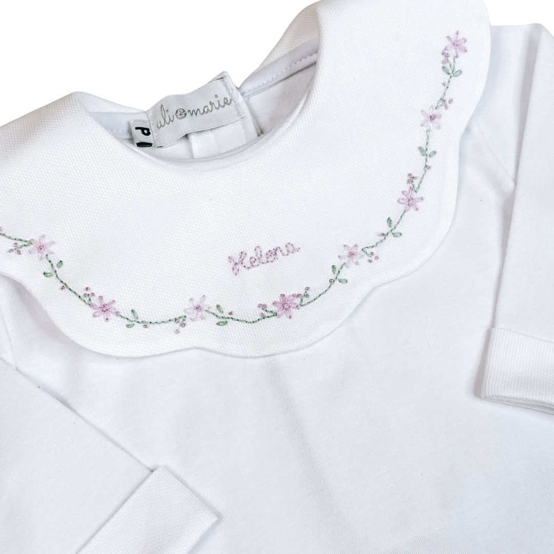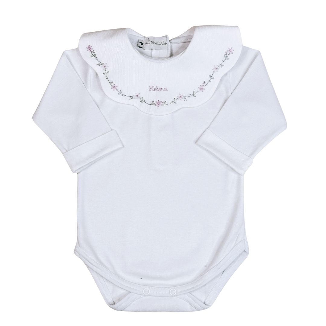 O Body Personalizado Encanto lilás Bordado à Mão da Uli&Marie é uma peça exclusiva e delicada, feita com todo o carinho para deixar os primeiros momentos da sua bebê ainda mais especiais. A gola em formato de babado é bordada à mão com flores em tons suaves e com o nome da sua bebê. Um toque artesanal que transforma o primeiro enxoval em uma verdadeira lembrança de amor.