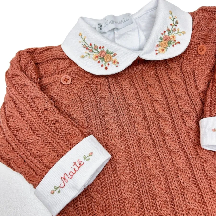 O nosso conjunto de gorro e luvas de tricot com delicados detalhes em trança é perfeito para manter o seu bebê quentinho e confortável na maternidade e nos primeiros passeios.
