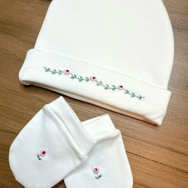 Kit Gorro e Luva Bordados à Mão – Proteção e Charme para o Bebê