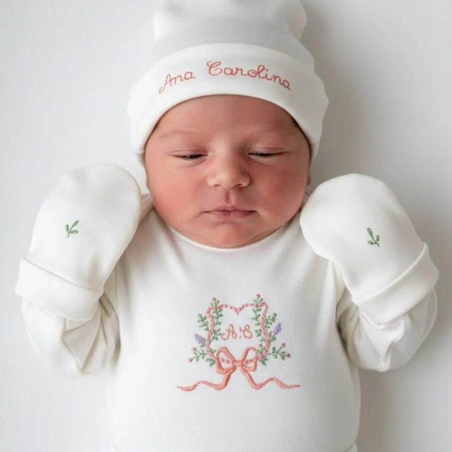 ✔ Bordado à mão e Personalização inclusa – Escolha o tema que deseja bordar e tenha um conjunto único para sua bebê.
