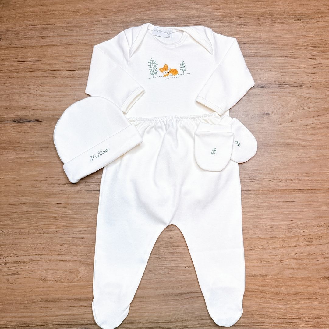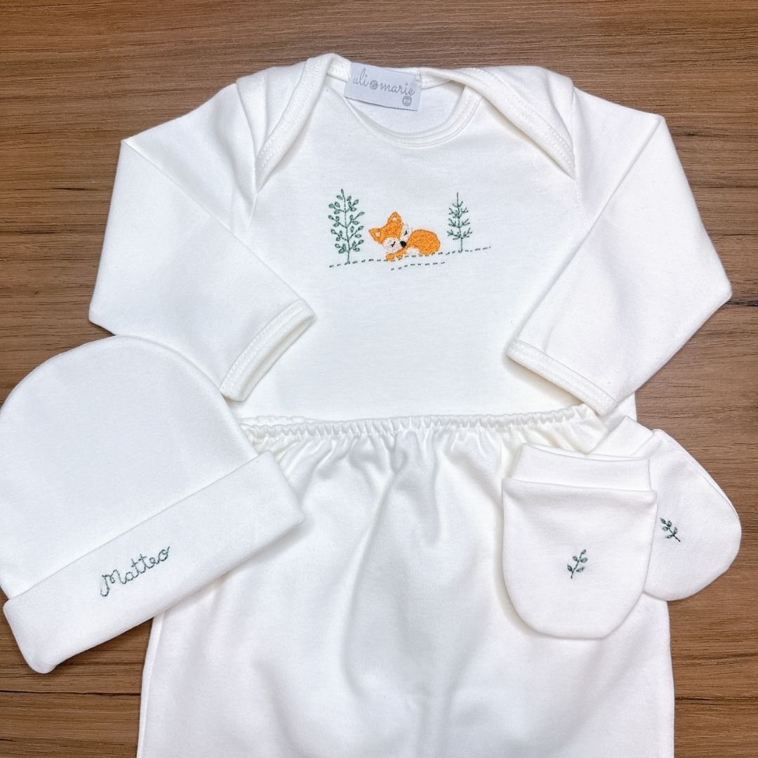 Desenvolvido em 100% Algodão Egípcio, esse conjunto une delicadeza, conforto e durabilidade. Ideal para a mala da maternidade, garantindo suavidade e proteção para a pele sensível do bebê. Além de ser uma lembrança especial desse momento único!