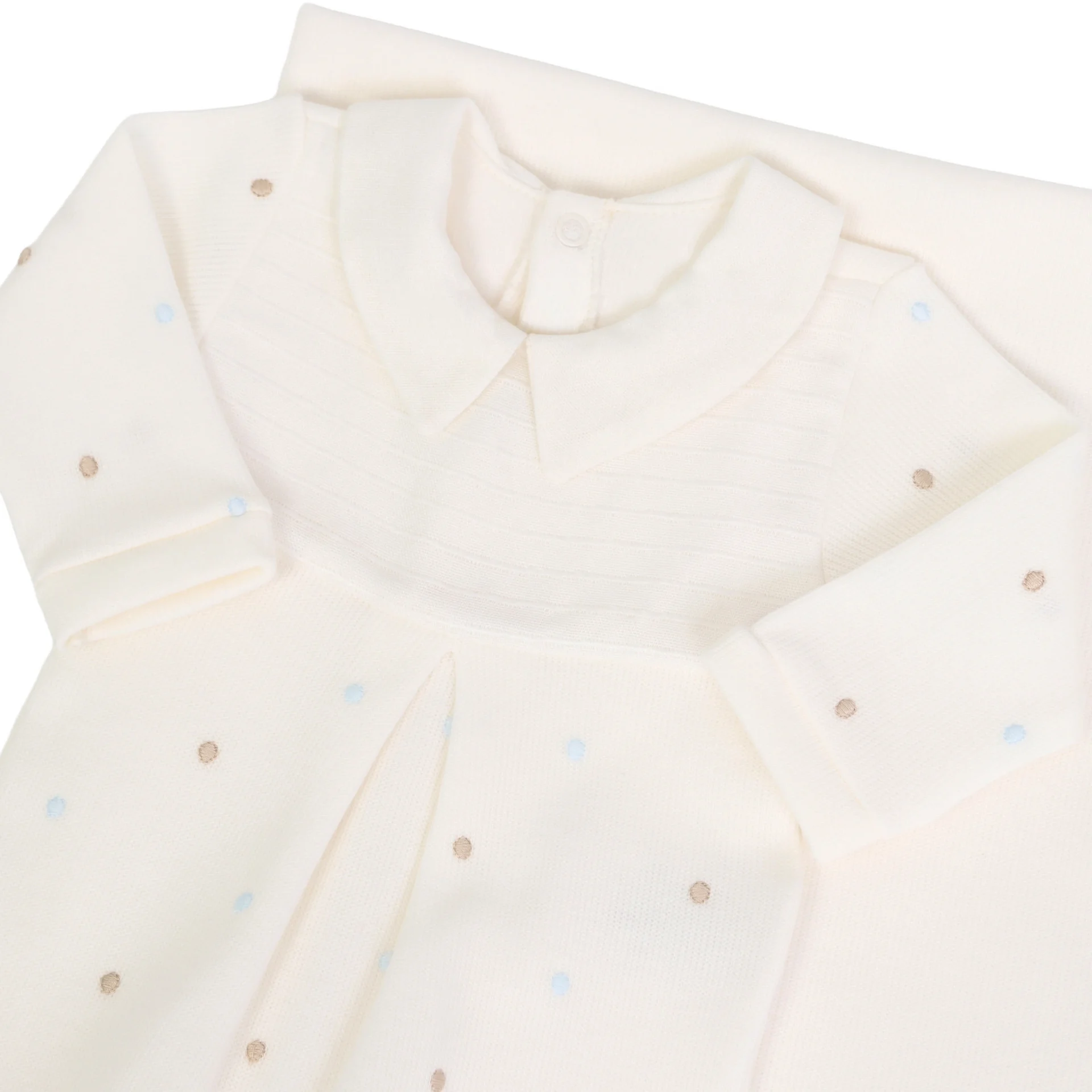 - Botões nas costas e na entrepernas, facilitando a troca de fralda e vestimenta do bebê.