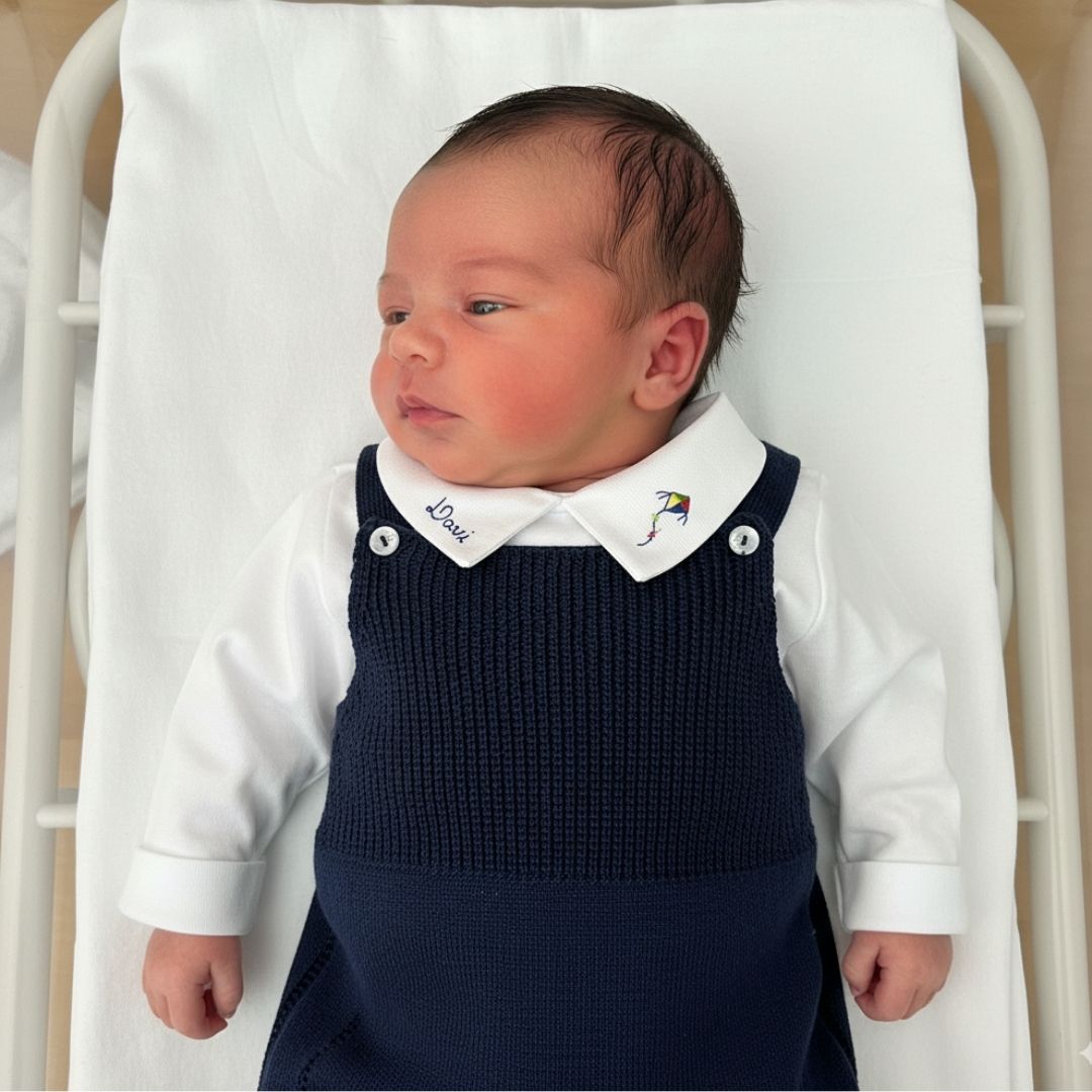Saída Maternidade Bambu Azul Marinho com Body Personalizado – Bordado à Mão