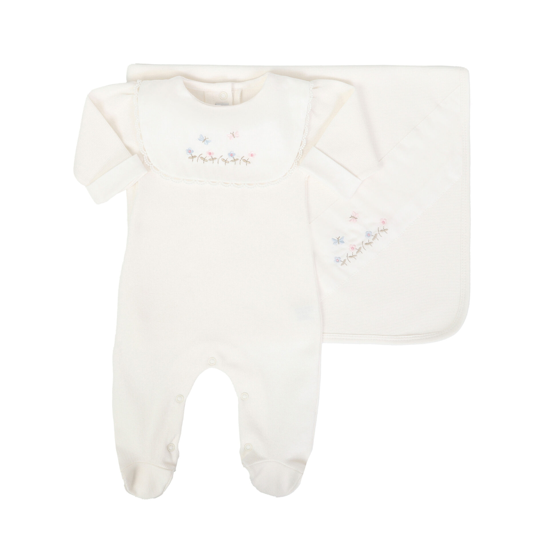 A Saída Maternidade Jardim é a escolha ideal para mamães que desejam praticidade, conforto e sofisticação no primeiro look do bebê. Composta por duas peças – um macacão com pala bordada fixa e uma manta combinando –, esse conjunto proporciona um visual harmonioso e encantador.